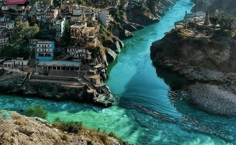 Devprayag - Sacred confluence of Alaknanda and Bhagirathi rivers forming Ganga
